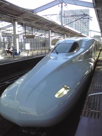 出張帰りの岡山駅で、来年3月から鹿児島まで直通運転する新幹線車両の試乗会を見ました。