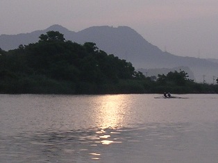 走り終わる頃には、濃く水蒸気がかかった西の空へ、赤い貼りついたような太陽が沈んでいきました。
